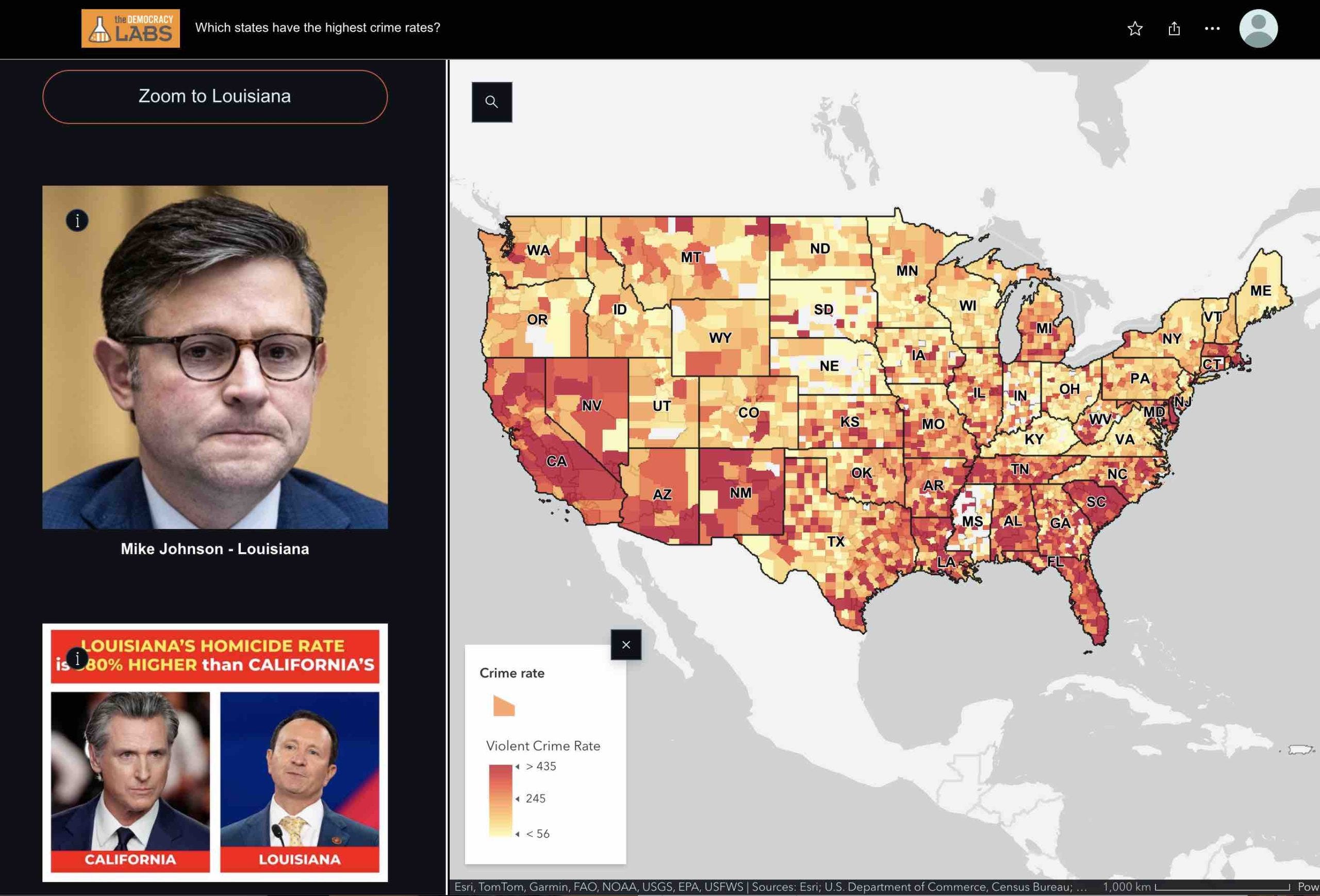 “Look at the murder rate that’s nearly four times higher than California’s — in Louisiana,” Newsom said, holding up the flier with Johnson’s face. “I want to present some facts to the president of the United States, and I imagine this is alarming to the president to learn these facts, particularly to Speaker Johnson, who has been such a strong partner and ally in these efforts. The carnage in Louisiana is well defined.” - Washington Post